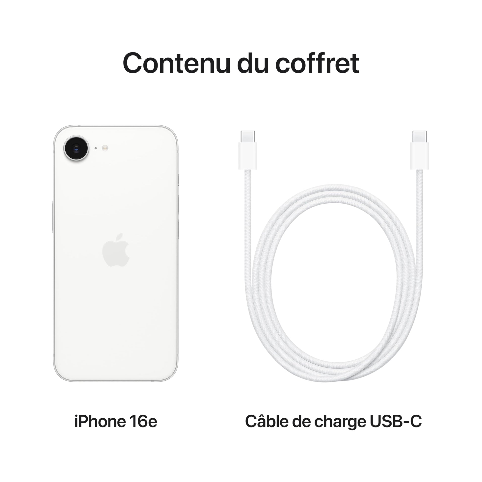 Apple iPhone 16e 128 Go : Conçu pour Apple Intelligence, Puce A18, Autonomie de Taille, Caméra Fusion 48 Mpx, Écran Super Retina XDR de 6,1 Pouces; Blanc