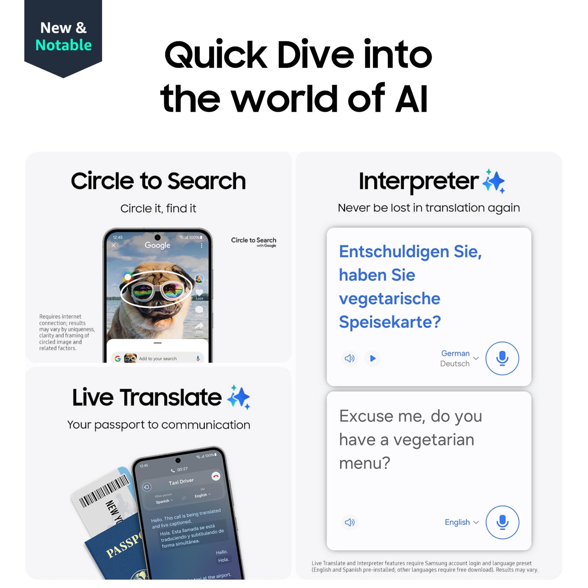- NEVER BE LOST IN TRANSLATION AGAIN: Understand text, calls and in-person conversations in another language using real-time translations¹ with Galaxy AI.²