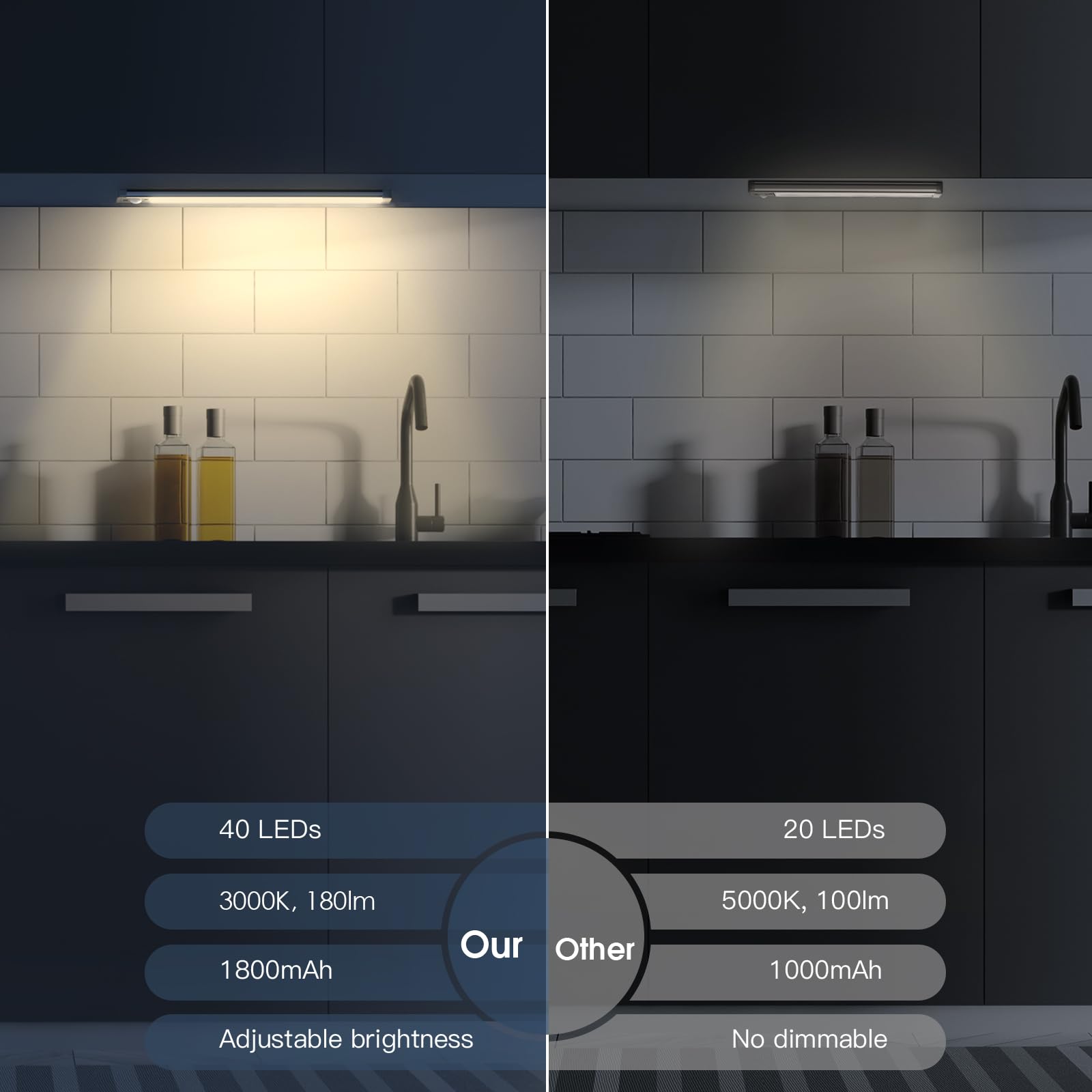 ✔️40 LED: The under cabinet lighting includes 40 LED beads which emit 180 lumens of soft, diffused white light. Provide sufficient light to illuminate every dark corner.
